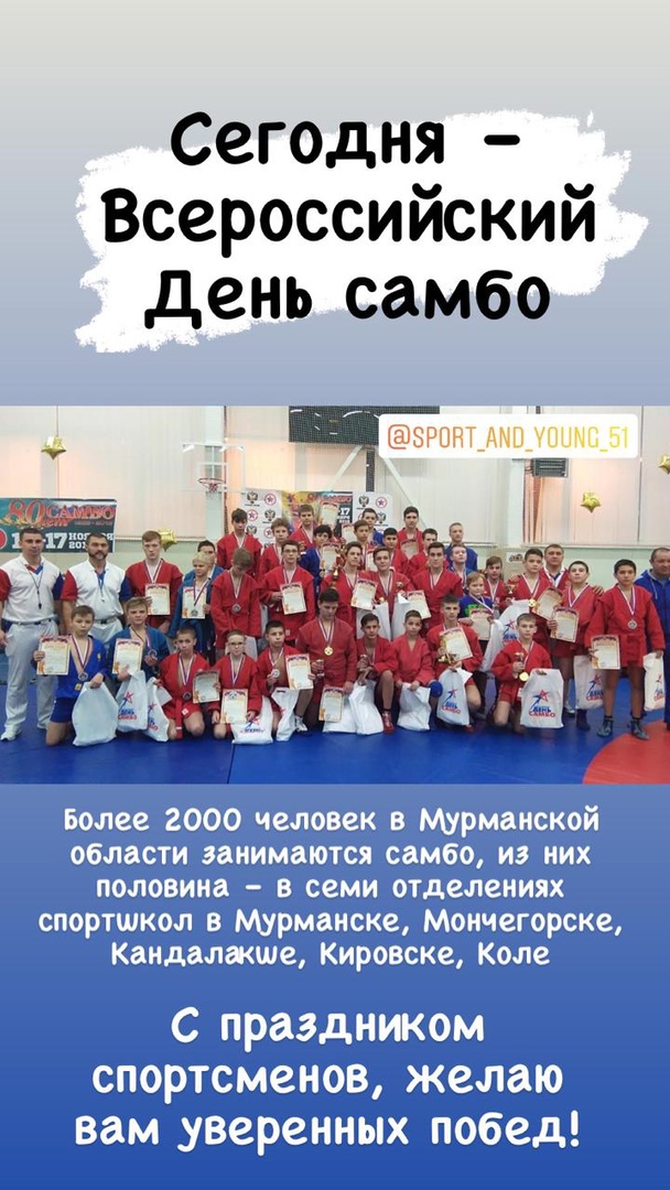 Поздравляем с Днем самбо всех спортсменов, тренеров, а также физкультурный актив, причастный к развитию данного вида спорта в Мурманской области. Желаем всем вам крепкого здоровья, новых спортивных достижений и жизненных побед!